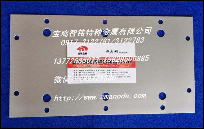 宝鸡智铭特种金属有限公司 地址:中国陕西宝鸡高新开发区 销售部:0917-3122781 0917-3122783 技术部:0917-3122785 联系人:田经理 高经理 手机:13772685077 15829506885 13892485296 微信:13772668206 15829506885 QQ:2290241197 e-mail:1550319555@qq.com 官网:http://www.zmanode.com http://www.bjzmjs.com
