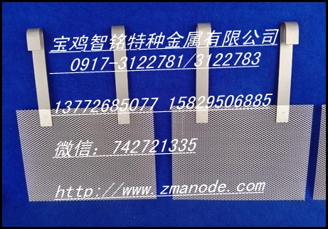 宝鸡智铭特种金属有限公司专业从事铂电极 铂金钛网 白金钛网 铂金铌网 铂金钽电极 钛阳极 钛电极 涂钌电极 钌铱钛电极 铱钽钛阳极 DSA MMO EDI等不溶性金属电极设计制造,品质优良,价格合理,交货及时,欢迎各界朋友来电咨询洽谈; 铂电极 铂金钛网 白金钛网 铂金铌网 铂金钽电极 钛阳极 钛电极 涂钌电极 钌铱钛电极 铱钽钛阳极 简介 材质:TA1 TA2 Ta1 Nb 规格:标准规格或根据用户实际需要设计生产各种异型件 工艺:热分解,电镀 Pt纯度:99.99% Pt厚度:0.5-20um 结构:钛基+Pt 铌基+Pt 钽基+Pt 钛基+活性催化剂 特性:电催化活性高,耐腐蚀,高电流密度条件下工作寿命长,无污染,节能环保新产品 应用领域:电镀,电解,电冶金,电渗析,电催化氧化,阴极保护等领域 销售一部:0917-3122781 销售二部:0917-3122783 技 术 部:0917-3122785 联系人:高经理 杜经理 赵经理 田经理 QQ:2290241197 微信:742721335 宝鸡智铭特种金属有限公司 地址:中国陕西宝鸡高新开发区东星工业园 邮编:721013 主页:http://www.zmanode.com email:1550319555@qq.com