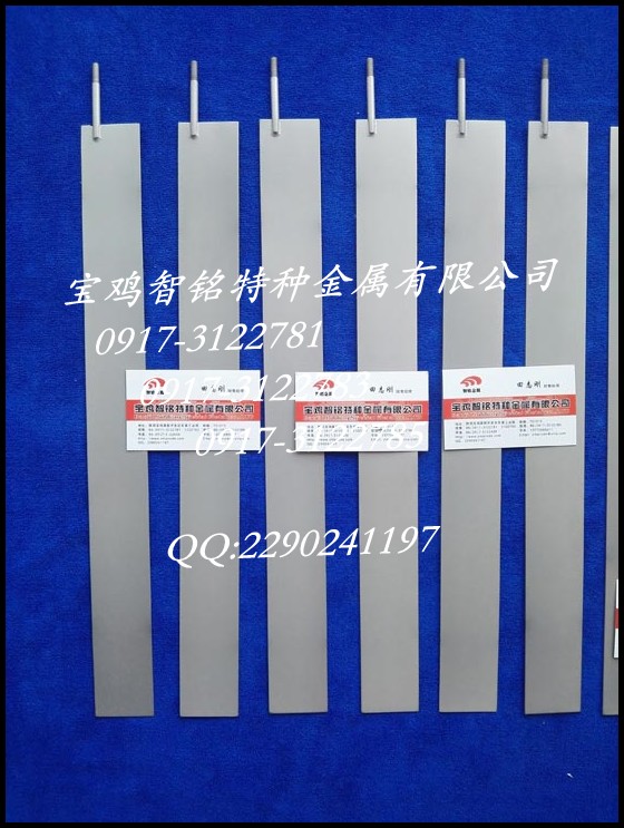 结构:钛基+Pt 钛基+RuO2 钛基+IrO2 钛基+PbO2 形状:钛板,钛网,钛丝,钛管,钛棒,钛带,钛箔,钛螺丝,钛异形件等表面均可以 工艺:热分解,电镀两种工艺 特性:电催化活性高,耐腐蚀,无二次污染,低过电位,高电流密度条件下工作寿命长,适合于各种复杂工作环境体系使用 应用领域:电镀,滚镀,刷镀,点镀,镀金,镀铬,镀镍,镀铜,镀锡,电冶金,有机合成,阴极保护,电解水,电催化污水处理等电解领域 技服:宝鸡智铭特种金属有限公司 地址:中国陕西宝鸡高新开发区东星工业园 邮编:721013 销一售部:0917-3122781 销售二部:0917-3122783 技术部: 0917-3122785 联系人:田经理 高经理 康经理 手机:15829506885 13772685077 13892485296 QQ:2290241197 微信:742721335 15829506885 主页:http://www.zmanode.com email:1550319555@qq.com